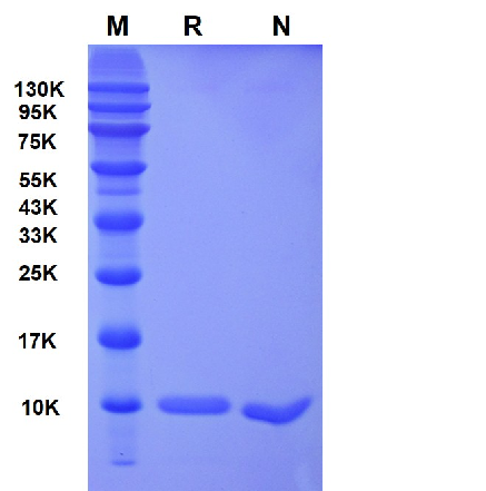 Human IL-2 Protein on SDS-PAGE under reduced (R) and Non-reducing (R) conditions. The purity is greater than 95%.