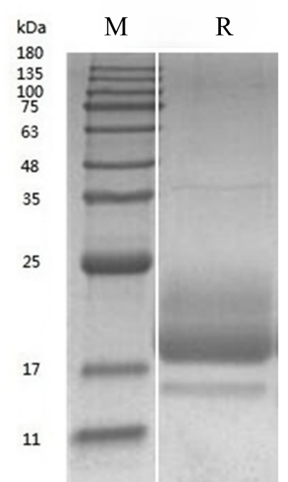 Human IL-15 Protein on SDS-PAGE under reducing (R) condition. The purity is greater than 95%.