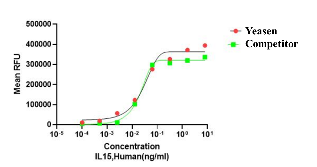 白介素15 (Interleukin-15,IL-15)是一种刺激T淋巴细胞增殖的免疫调节细胞因子。IL-15主要在T细胞上发挥其生物学活性。它对NK细胞的发育、存活和活化也至关重要。IL-15表达增加与类风湿性关节炎、炎症性肠病以及与逆转录病毒HIV和HTLV-I相关的疾病有关。通过对小鼠CTLL细胞增殖的剂量依赖性刺激测量,人IL-15对小鼠细胞具有生物活性。