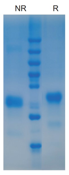 4 ug/lane protein was resolved with SDS-PAGE under non-reducing (NR)and reducing (R)conditions and visualized by Coomassie blue staining.