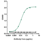 Immobilized human CD20 His at 2 μg/mL can bind Anti-CD20 Reference Antibody (rituximab), EC50=0.01573/0.01258 μg/mL.