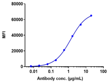 Raji cells were stained with Anti-CD20 Reference Antibody (rituximab) and negative control protein respectively, washed and then followed by PE and analyzed with FACS, EC50=1.334 μg/mL.