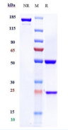 Anti-CD20 Reference Antibody (rituximab) on SDS-PAGE under reducing (R) condition. The purity of the protein is greater than 95%.