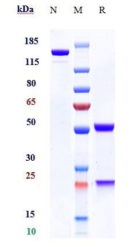 Anti-CD20 Reference Antibody (obinutuzumab) on SDS-PAGE under reducing (R) condition. The purity of the protein is greater than 90%.