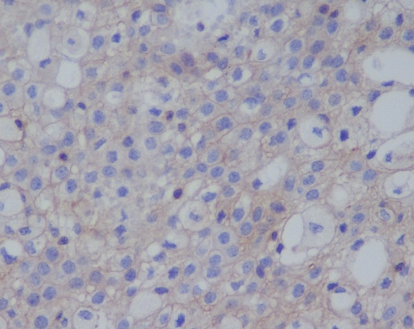 Immunohistochemistry analysis of paraffin-embedded human thymoma using PD-L1 antibody. High-pressure and temperature Sodium Citrate pH 6.0 was used for antigen retrieval.