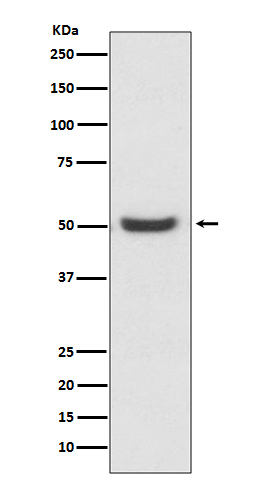 Western blot analysis of PDIA6 in K562 lysates using PDIA6 antibody.