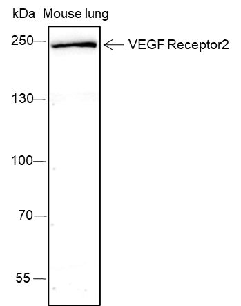 Western blot analysis of VEGF Receptor2 in lysates of mouse lung using VEGF Receptor2 antibody.