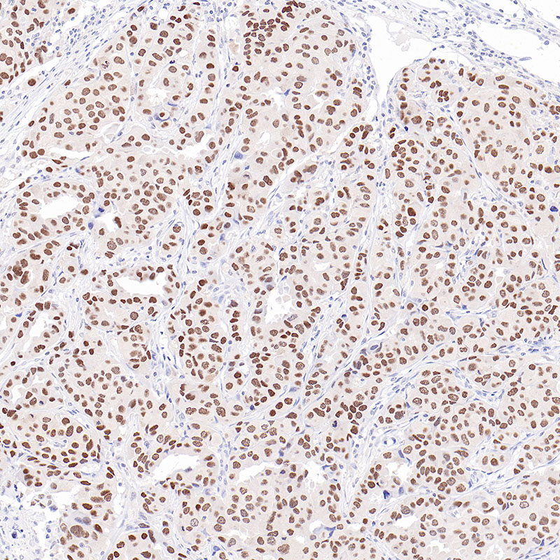 Immunohistochemistry analysis of paraffin-embedded Breast Cancer using TRPS1 antibody.High-pressure and temperature Tris-EDTA pH 8.0 was used for antigen retrieval.