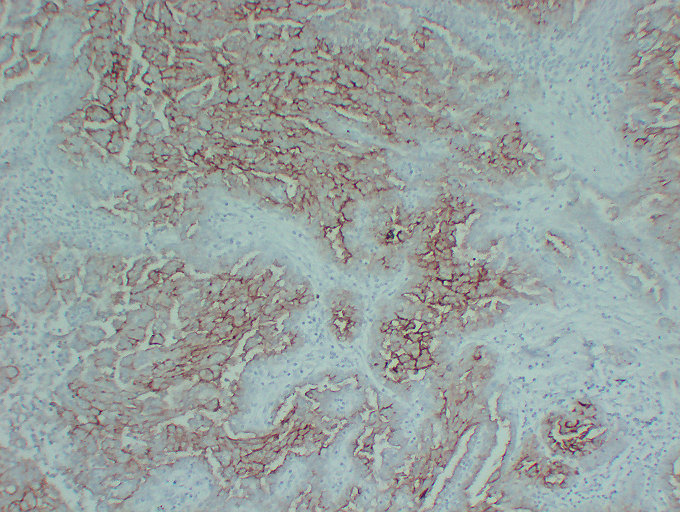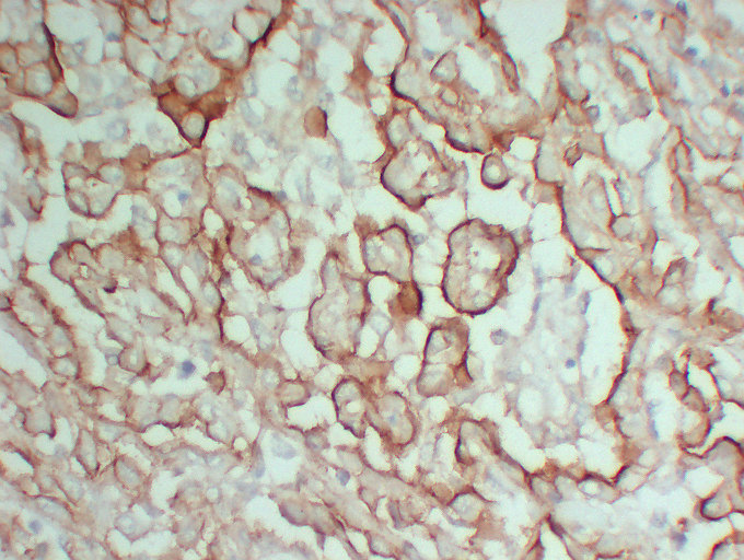Immunohistochemistry analysis of paraffin-embedded Human Mesothelioma using Mucin 16 antibody.High-pressure and temperature Sodium Citrate pH 6.0 was used for antigen retrieval.