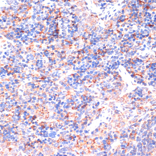 Immunohistochemistry analysis of paraffin-embedded mouse spleen using IL-6 antibody. High-pressure and temperature Sodium Citrate pH 6.0 was used for antigen retrieval.