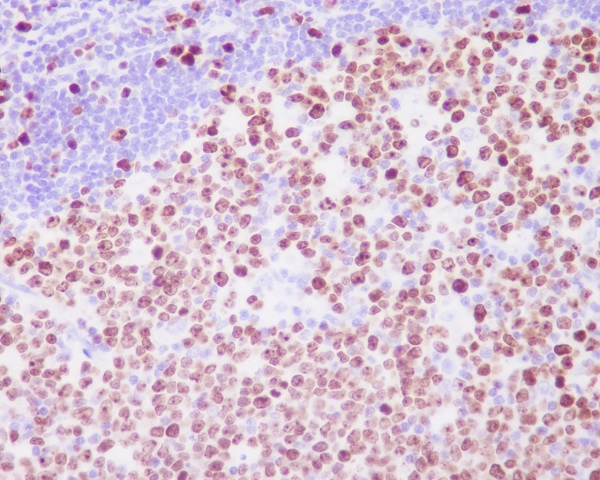 Immunohistochemistry analysis of paraffin-embedded Human tonsil using Ki67 antibody.High-pressure and temperature Sodium Citrate pH 6.0 was used for antigen retrieval.