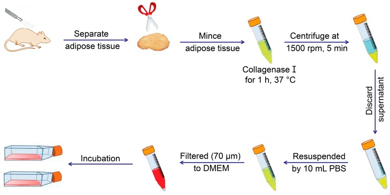 图3.小鼠脂肪组织来源的间充质干细胞的典型提取流程[1]