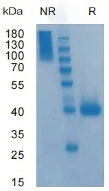 4 ug/lane protein was resolved with SDS-PAGE under non-reducing (NR) and reducing (R) conditions and visualized by Coomassie Blue staining.