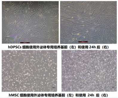 4. 改换完全培养基培养 MSC 细胞,持续培养24~48小时,细胞融合率达到80%左右后,收取上清液提取外泌体(如需收集更多外泌体,在细胞状态良好的情况下可每 24 小时更换培养基和收集上清液)。