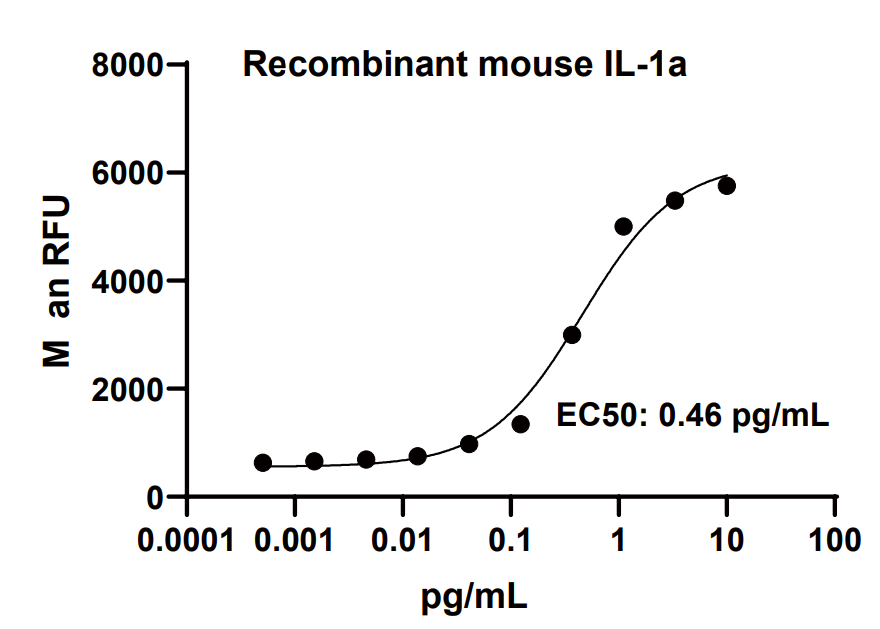 Measured in a cell proliferation assay using D10.G4.1 mouse helper T cells. The EC50 for this effect is 0.1-2 pg/mL.
