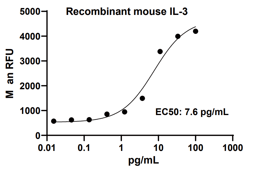 Measured in a cell proliferation assay using NFS-60 mouse myelogenous leukemia lymphoblast cells. The EC50 for this effect is 3-12 pg/mL.