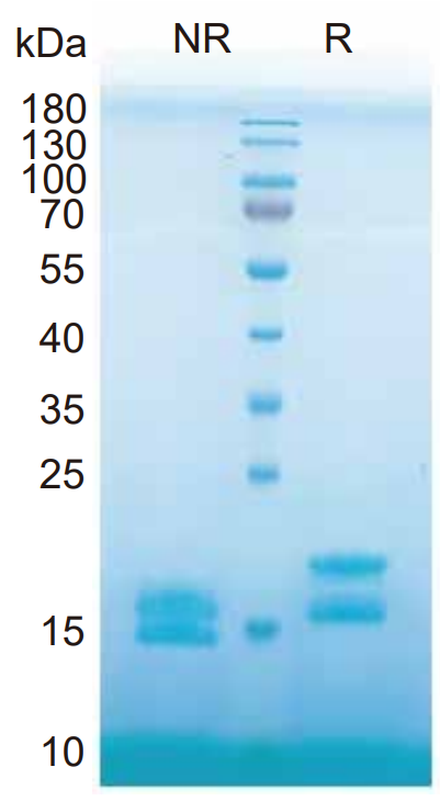 干扰素-α (IFN-α) 也称为白细胞干扰素,是一组相关但不同的蛋白质,它们具有超过 95% 的氨基酸序列同源性。它们属于 I 型干扰素家族,具有一个共同的细胞表面受体,该受体由两个亚基组成,一个 100 kDa 配体结合亚基 (IFN-α R2) 和一个 125 kDa 配体结合和信号转导亚基 (IFN-α R1),参与配体结合和信号转导。IFN-α 对靶细胞具有抗病毒和免疫调节活性。?本品以液体形式提供,高活性、高纯度、低内毒素、无标签。