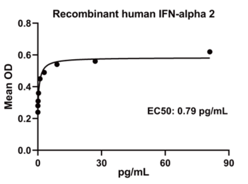 Measured in antiviral assays using WISH human amnion cells infected with vesicular stomatitis virus(VSV).The EC50 for interferon in this assay is 0.5-3 pg/mL.