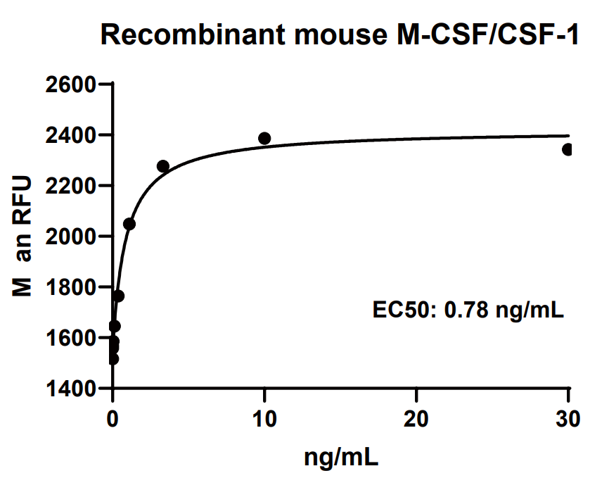 Measured in a cell proliferation assay using M‑NFS‑60 mouse myelogenous leukemia lymphoblast cells. The EC50 for this effect is 0.2‑1.5 ng/mL.