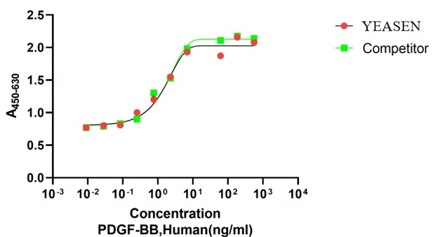 PDGF是由两条12.0-13.5 kDa多肽链组成的二硫键连接的二聚体,分别命名为PDGF-A和PDGF-B链。PDGF-AA、PDGF-BB和PDGF-AB这三种天然存在的PDGF是多种细胞类型的强效促有丝分裂原,包括平滑肌细胞、结缔组织细胞、骨和软骨细胞以及一些血细胞。PDGF储存在血小板α颗粒中,并在血小板活化时释放。PDGF参与许多生物过程,包括增生、趋化性、胚胎神经元发育和呼吸小管上皮细胞发育。PDGF使用的两种不同的信号受体已被鉴定并命名为PDGFR-α和PDGFR-β。PDGFR-α是三种PDGF形式的高亲和力受体。另一方面,PDGFR-β仅与PDGF-BB和PDGF-AB相互作用。