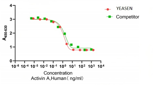 激活素A是TGF-β家族成员,具有广泛的生物学活性,包括调节细胞增殖和分化,以及促进神经元存活。人类结直肠癌和绝经后妇女中激活素A水平升高分别与结直肠癌和乳腺癌有关。激活素A的生物活性可以被抑制素和可扩散的TGF-β拮抗剂卵泡抑素中和。激活素A与两种形式的激活素受体I型(动作RI-A和动作RI-B)和两种形式(动作RII-A和动作RII-B)结合。激活素是不同β亚基的同源二聚体或异二聚体。它们作为前体蛋白产生,具有氨基末端前肽,该前肽被切割以释放C末端生物活性配体。?本品以冻干粉形式提供,高活性、高纯度、低内毒素、无标签。