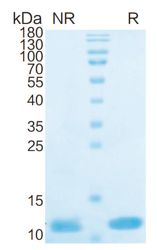 4 ug/lane protein was resolved with SDS-PAGE under non-reducing (NR) and reducing (R) conditions and visualized by Coomassie Blue staining.