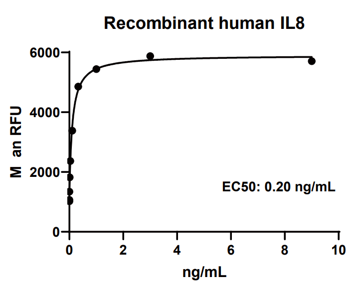 Measured by its ability to chemoattract BaF3 mouse pro‑B cells transfected with human CXCR2. The EC50 for this effect is 0.2-1.0 ng/mL.