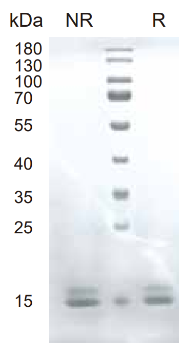 2 ug/lane protein was resolved with SDS-PAGE under non-reducing (NR) and reducing (R) conditions and visualized by Coomassie Blue staining.