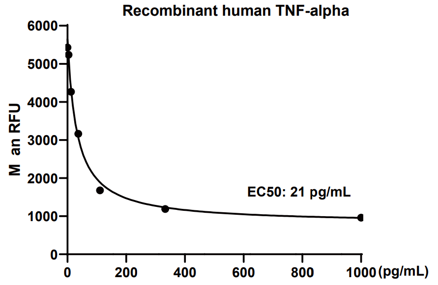 Measured in a cytotoxicity assay using L‑929 mouse fibroblast cells in the presence of the metabolic inhibitor actinomycin D.The EC50 for this effect is 20-100 pg/mL.