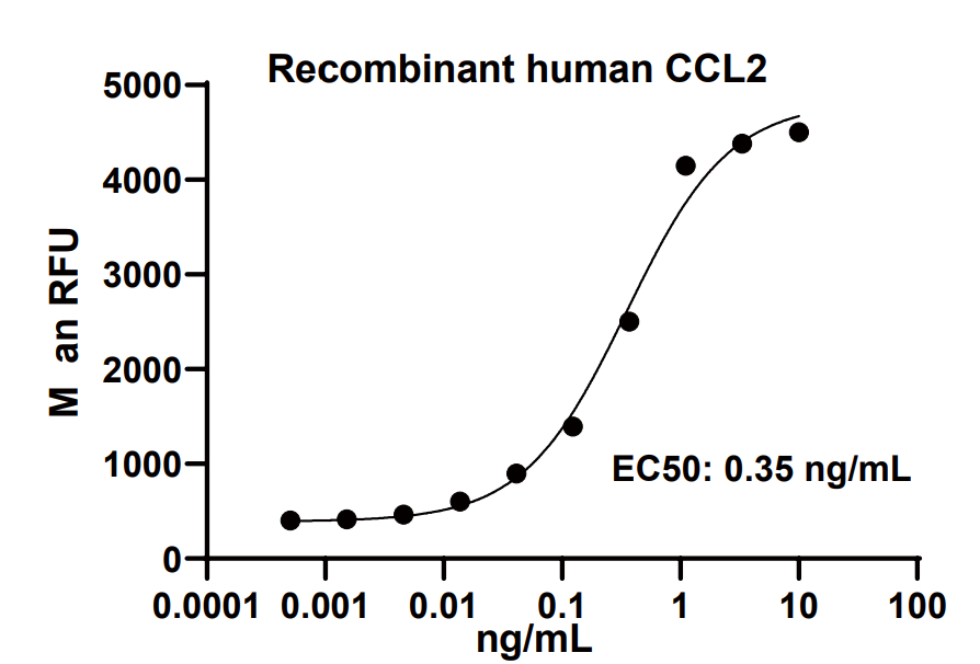 Measured by its ability to chemoattract BaF3 mouse pro-B cells transfected with human CCR2A. The EC50 for this effect is 0.1-1 ng/mL.