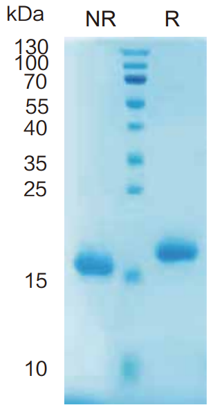 2 ug/lane protein was resolved with SDS-PAGE under non-reducing (NR) and reducing (R) conditions and visualized by Coomassie Blue staining.