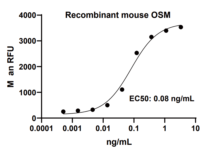 抑瘤素M(OSM)是一种生长分化因子,参与神经发生、成骨和造血的调控。它刺激成纤维细胞、平滑肌细胞和卡波西肉瘤细胞的增殖,但抑制一些正常和肿瘤细胞系的生长,它还促进内皮细胞释放细胞因子(如IL-6、GM-CSF和g-CSF),并增强肝癌细胞中低密度脂蛋白受体的表达。OSM由活化的T细胞、单核细胞和卡波西肉瘤细胞产生,对细胞增殖具有刺激和抑制作用。