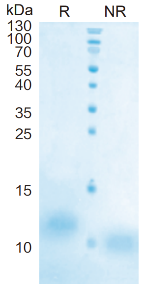 4 ug/lane protein was resolved with SDS-PAGE under non-reducing (NR) and reducing (R) conditions and visualized by Coomassie Blue staining.