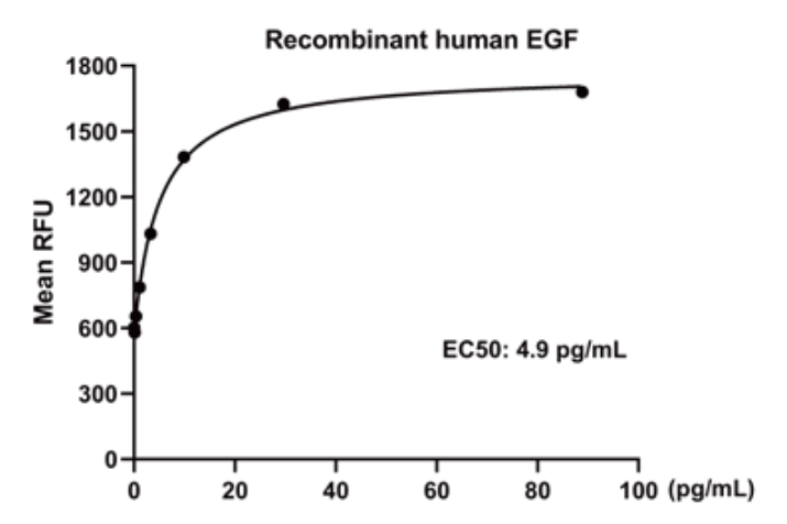 Measured in a cell proliferation assay using Balb/3T3 mouse embryonic fibroblast cells. The EC50 for this effect is 4-50 pg/mL.