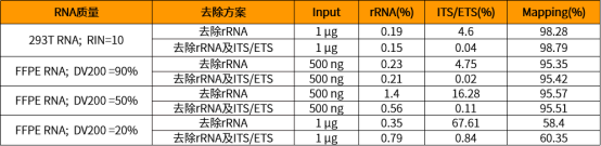Hieff NGS ® MaxUp Human rRNA Depletion Kit (rRNA & ITS/ETS)利用RNase H消化法去除人、小鼠和大鼠来源总RNA中的核糖体 RNA 和 45S ITS/ETS 区域以保留信使 RNA (mRNA)和其它非编码 RNA。该试剂盒对于完整和部分降解的总 RNA(如FFPE RNA)均具有良好的rRNA 去除效果。由于降解的FFPE样本相比新鲜组织样本通常含有较高比例的ITS/ETS, 该试剂盒人、小鼠和大鼠 45S ITS/ETS 区域的探针,经该试剂盒去除后可显著提高测序结果中有效数据比例。