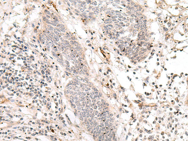 Immunohistochemistry analysis of paraffin-embedded Human esophagus cancer using Notch3 antibody. High-pressure and temperature Sodium Citrate pH 6.0 was used for antigen retrieval.
