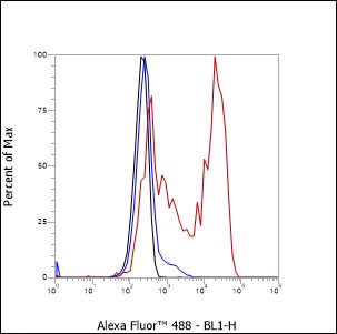 Flow Cytometry analysis of PBMC stained with CD5 antibody(Red).Blue line histogram represents nonspecific negative control