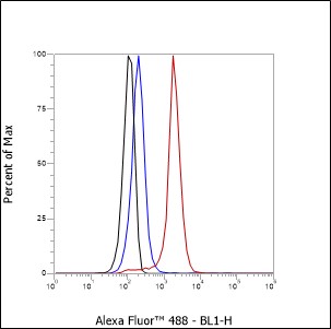 Flow Cytometry analysis of PBMC stained with CD89 antibody(Red).Blue line histogram represents nonspecific negative control