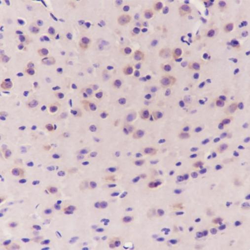 Immunohistochemistry analysis of paraffin-embedded Mouse brain using Elongation Factor 1A1 antibody.High pressure and temperature Tris/EDTA (PH 9.0) used for antigen retrieval.The brown color represents the positive signal observed with Elongation Factor 1A1 antibody.