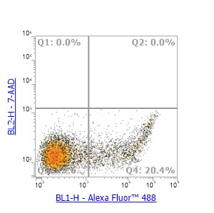 Flow Cytometry analysis of PBMC stained with CCR4 antibody(Red).Blue line histogram represents nonspecific negative control