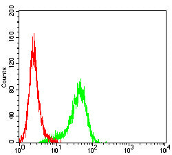 Flow Cytometry analysis of Jurkat cells using CD1D antibody (green) and negative control (red).