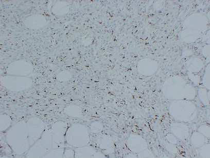 Immunohistochemistry analysis of paraffin-embedded Dermatofibrosarcoma protuberant using Factor XIIIa antibody.High-pressure and temperature Sodium Citrate pH 6.0 was used for antigen retrieval.