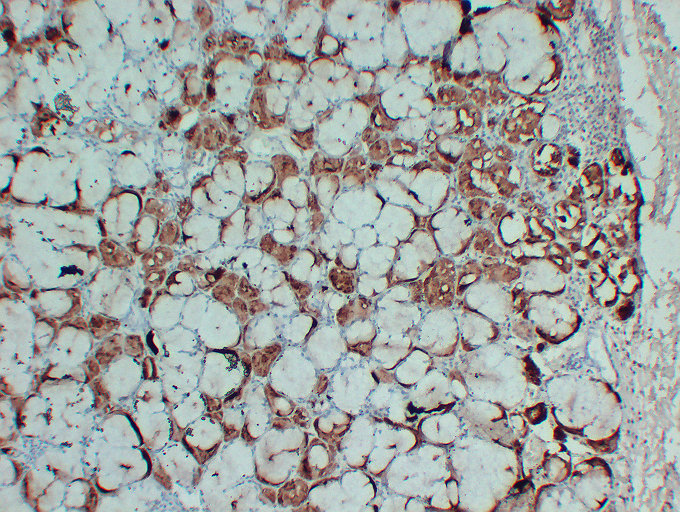 Immunohistochemistry analysis of paraffin-embedded Human Salivary glands using GCDFP 15 antibody.High-pressure and temperature Sodium Citrate pH 6.0 was used for antigen retrieval.