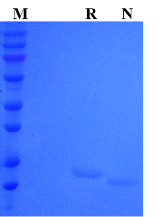Human IL-7 Protein on SDS-PAGE under reduced (R) and non-reducing (NR) conditions. The purity is greater than 95%.