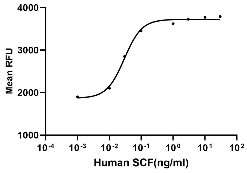 SCF, also known as stem cell factor or kit ligand, is a cytokine that plays a critical role in the survival, proliferation, and differentiation of hematopoietic stem cells and early progenitor cells. SCF is primarily produced by bone marrow stromal cells and functions by binding to the c-kit receptor on the surface of hematopoietic cells. Dysregulation of SCF signaling has been implicated in various types of cancer and hematological disorders.