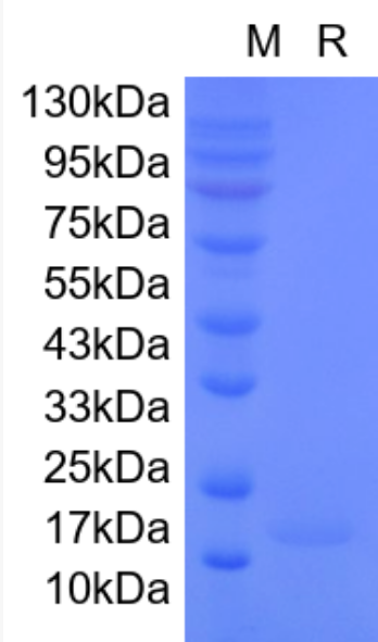 Human SCF Protein on SDS-PAGE under reduced(R) condition. The purity is greater than 95%.