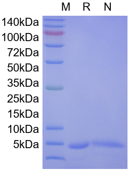 Human IL-13 Protein on SDS-PAGE under reduced(R) & Non-reducing(NR) condition. The purity is greater than 95%.