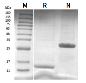 Human TGF-β3 Protein on SDS-PAGE under non-reduced (NR) and reducing (R) condition. The purity is greater than 95%.