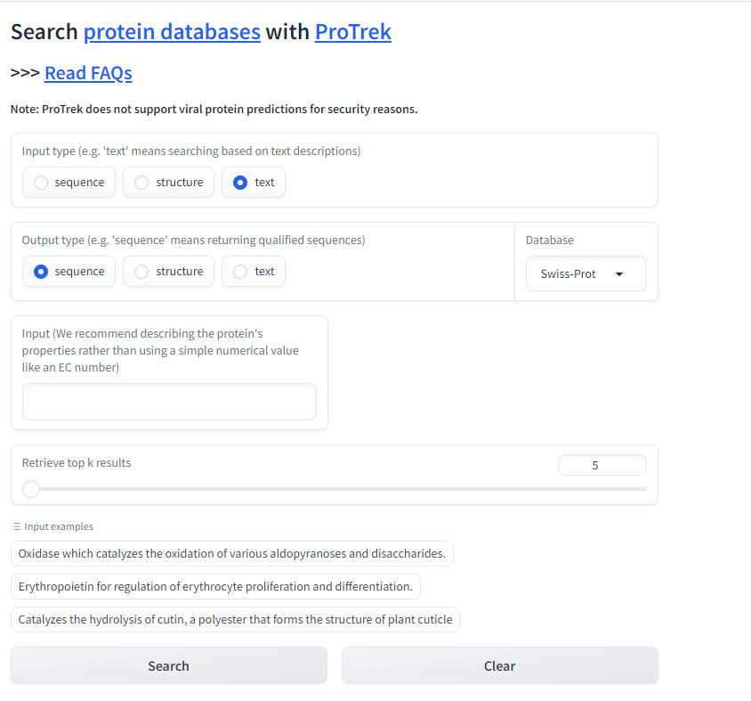开箱即用的网页服务器ProTrek (http://www.search-protrek.com)已收录超过 50 亿蛋白质数据信息,处理速度比传统工具(Foldseck和MMseqs2)快 100 倍以上,可在数秒内完成海量数据库的检索。