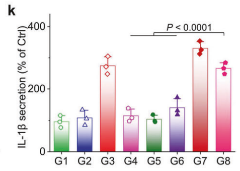 Fig 4k. IL-1β secretion from 4T1 cells after co-incubation with Cu–DHN for 18 h (n = 3).